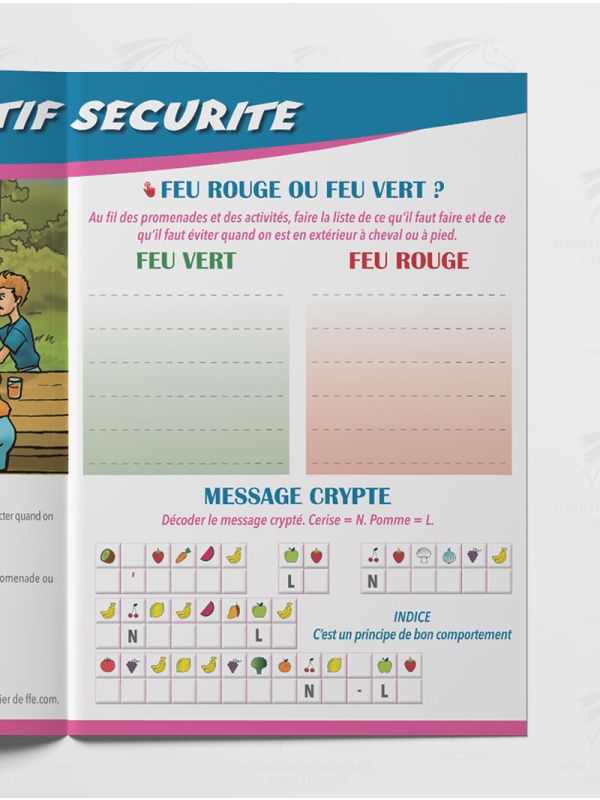 Éditeur : FFE (Fédération Française d'Equitation) | Couverture souple | 24 pages | Piqué | Poids : 37 grammes | Format A5 (15X21cm) | Illustration : Isabelle Chatry & Sylviane Gangloff