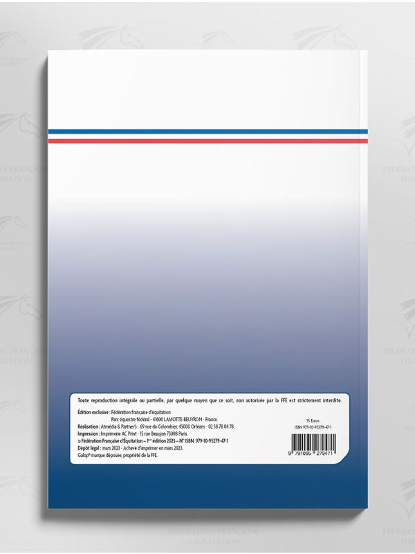 Auteur : Fédération Française d’Equitation | Ouvrage Collectif | 1ère édition : 2023 | Regroupe les guides Galops® 1 à 4 en un seul ouvrage | Langue : Français | Broché | Nombre de pages : 352 pages | Format A4 (21X29,7cm) | poids 1.800 kg | Produit exclusivement réservé aux Clubs | ISBN : 979-10-95279-47-1