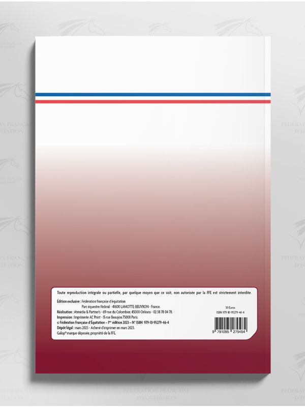Auteur : Fédération Française d’Equitation | Ouvrage Collectif | 1ère édition : 2023 | Regroupe les guides 5 à 9 tome 1 et 2 et échelle de progression en une seule publication | Langue : Français | Broché | Nombre de pages : 160 Pages | Format A4 (21X29,7cm) | Poids : 1.500 kg | Produit exclusivement réservé aux Clubs | ISBN : 979-10-95279-46-4