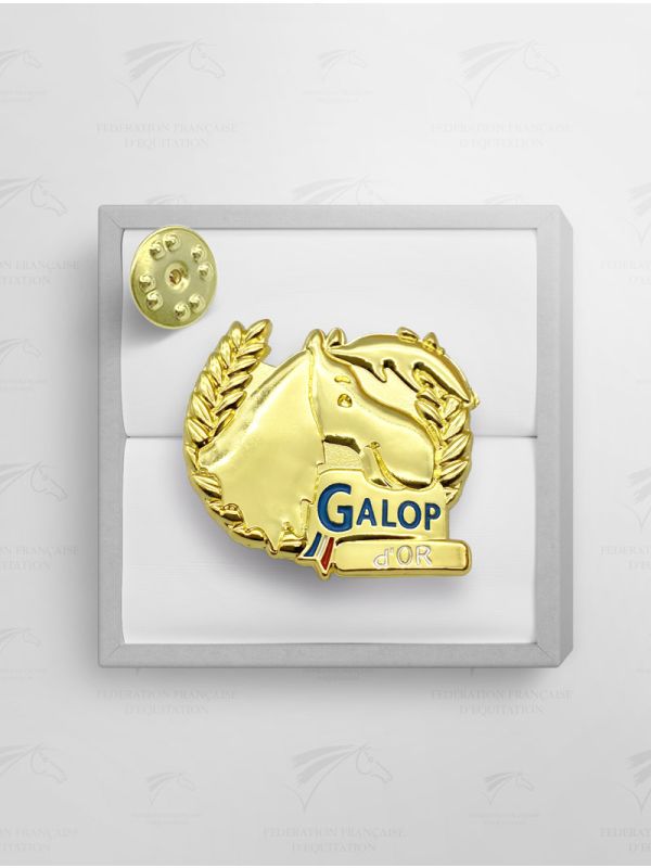 Mention du Galop® : or | Matière : métal | Type d'attache : papillon | Dimensions : 3,2 cm x 3 cm | Produit vendu sans boîte