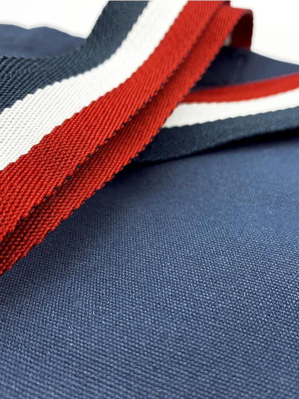 Matière : 100% coton canvas 235 g/m² | Couleur : bleu | Contenance : 10L | Dimensions hors hanses : 45x38x18 cm | Longueur des anses : 65 cm | Poids : 72 gr